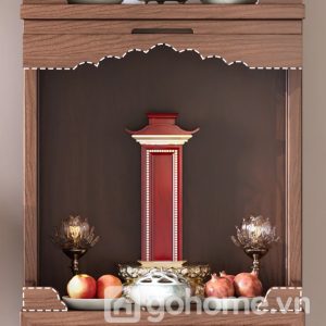 Gam màu nâu gỗ ấm áp giúp không gian thờ cúng trở nên trang nghiêm mà không quá nặng nề. Khi kết hợp cùng đèn thờ ánh vàng hoặc đèn LED hắt nhẹ bên trong, tổng thể tủ thờ trở nên lung linh, sang trọng, tạo cảm giác thiêng liêng nhưng vẫn gần gũi.