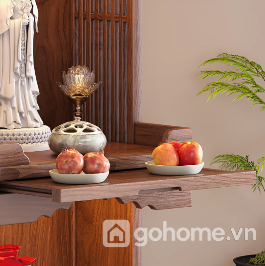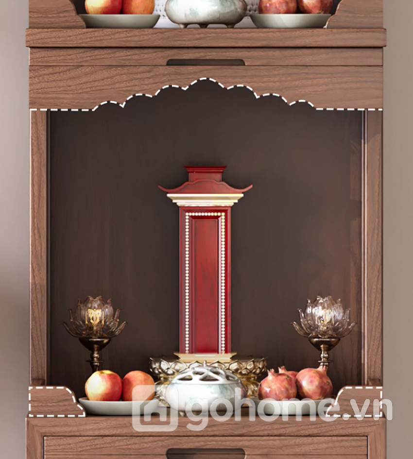Bạn có thể kết hợp thêm kệ trang trí hoặc vách ngăn gỗ để tạo không gian thờ riêng biệt, tăng tính riêng tư và thẩm mỹ.