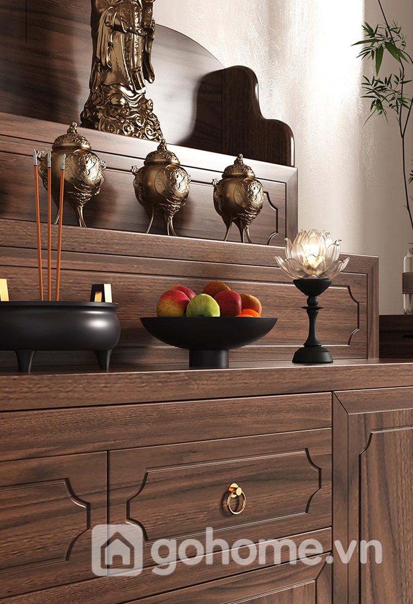 Đây là yếu tố giúp mẫu tủ thờ gỗ hiện đại này trở nên tiện dụng và phù hợp với nhiều gia đình hiện nay.